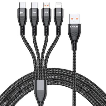 Καλώδιο ENKAY 4-σε-1 6A USB-A σε Type-C / 8 Pin / Micro USB Πολυλειτουργική Γρήγορη Φόρτιση, Μήκος Καλωδίου: 1m (Μαύρο) (ENKAY)