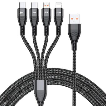 Καλώδιο δεδομένων και γρήγορης φόρτισης 4 σε 1, 66W 6A USB σε 8 ακίδες + Micro USB + Διπλό USB-C / Type-C, Μήκος καλωδίου: 2m (Μαύρο)