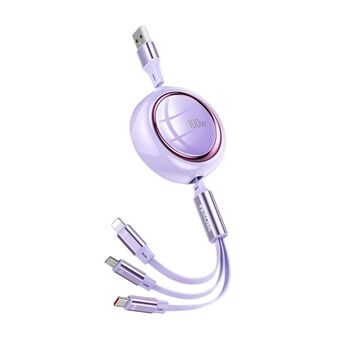 Καλώδιο δεδομένων WK WDC-18 Star Series 1,2μ 100W USB σε 8 ακίδες / Type-C / Micro USB ανασυρόμενο (Μωβ) (WK)