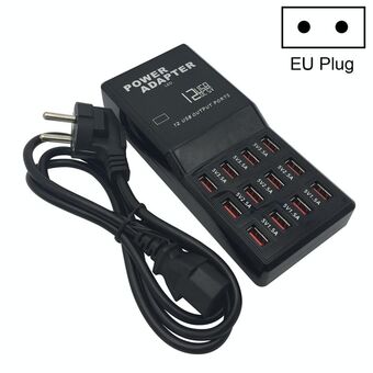 W-858 12A 12 Θύρες USB Γρήγορη Φόρτιση Dock Επιτραπέζιος Έξυπνος Φορτιστής AC100-240V, EU Plug (Μαύρο)