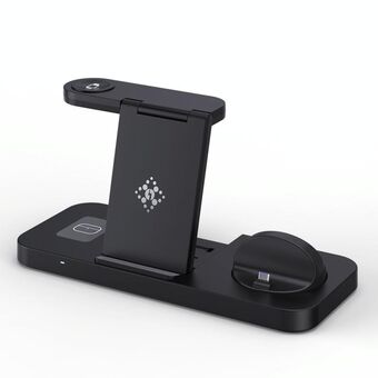 Φορτιστής ασύρματος, αναδιπλούμενος, καθολικός για κινητά τηλέφωνα / ακουστικά Apple Watch B21 6 σε 1 (Μαύρο)