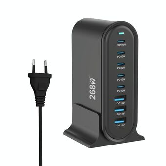 Φορτιστής Γρήγορης Φόρτισης Επιτραπέζιος YMX-968 268W 5Type-C, 3USB 8-Θυρών, Τύπος Βύσματος:EU (Μαύρο)