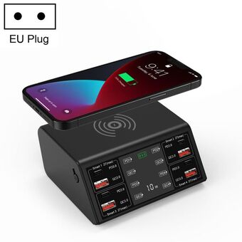 Φορτιστής 838w 9 σε 1 100W 4 PD 3.0 USB-C / Type-C + 4 QC 3.0 USB Θύρες, Έξυπνη Ψηφιακή Οθόνη, Ασύρματος Φορτιστής, Ευρωπαϊκό Βύσμα (Μαύρο)