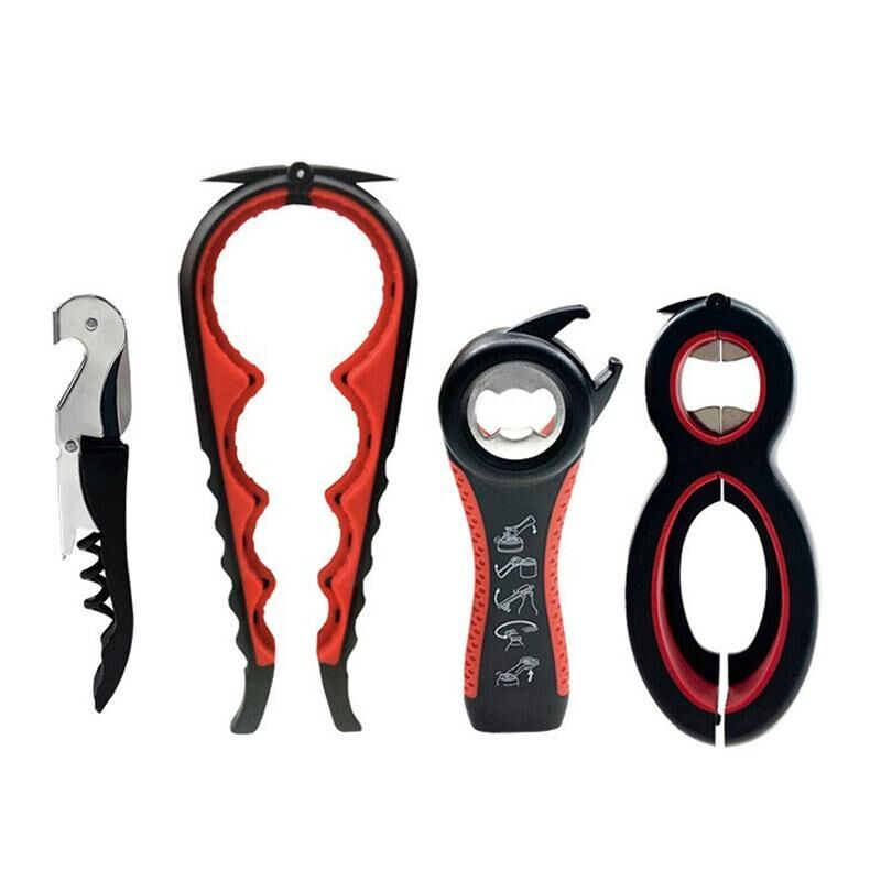 Πολυλειτουργικό 4 σε 1 Ανοιχτήρι μπουκαλιών οικιακής εξοικονόμησης Δύναμη ανοίγματος στυλ 2 (μαύρο κόκκινο)