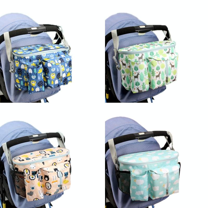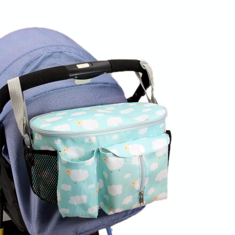 Multifunctional Baby Stroller Storage Bag, Colour: Green Lamb + Side Pocket