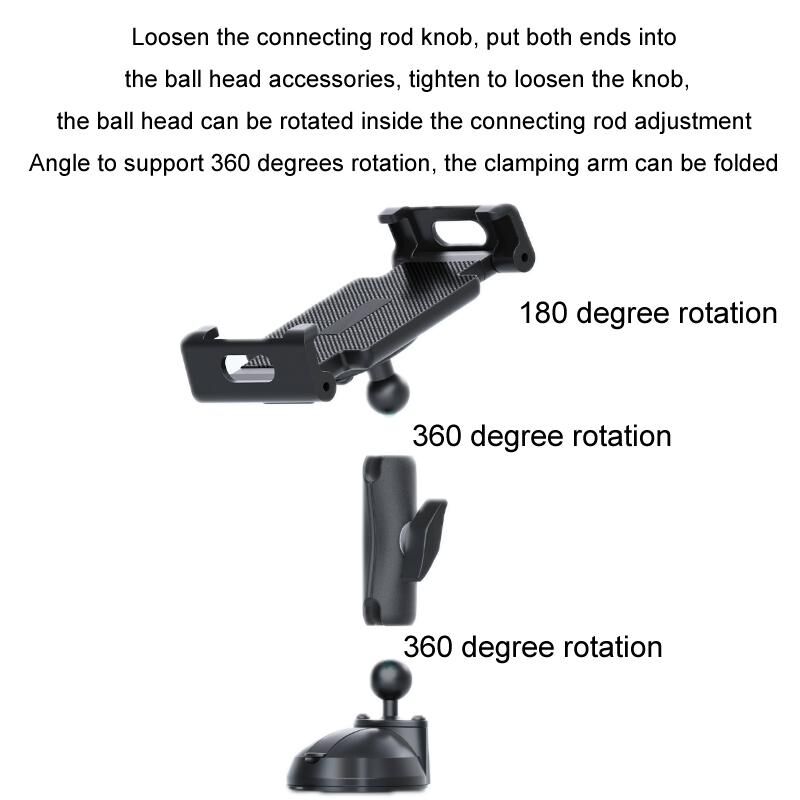 6. Loosen the connecting rod knob, put in the ball head accessories at both ends, tighten to loosen the knob, the ball head can rotate inside the connecting rod to adjust the angle, support 360-degree rotation, and the clamp arm can be folded