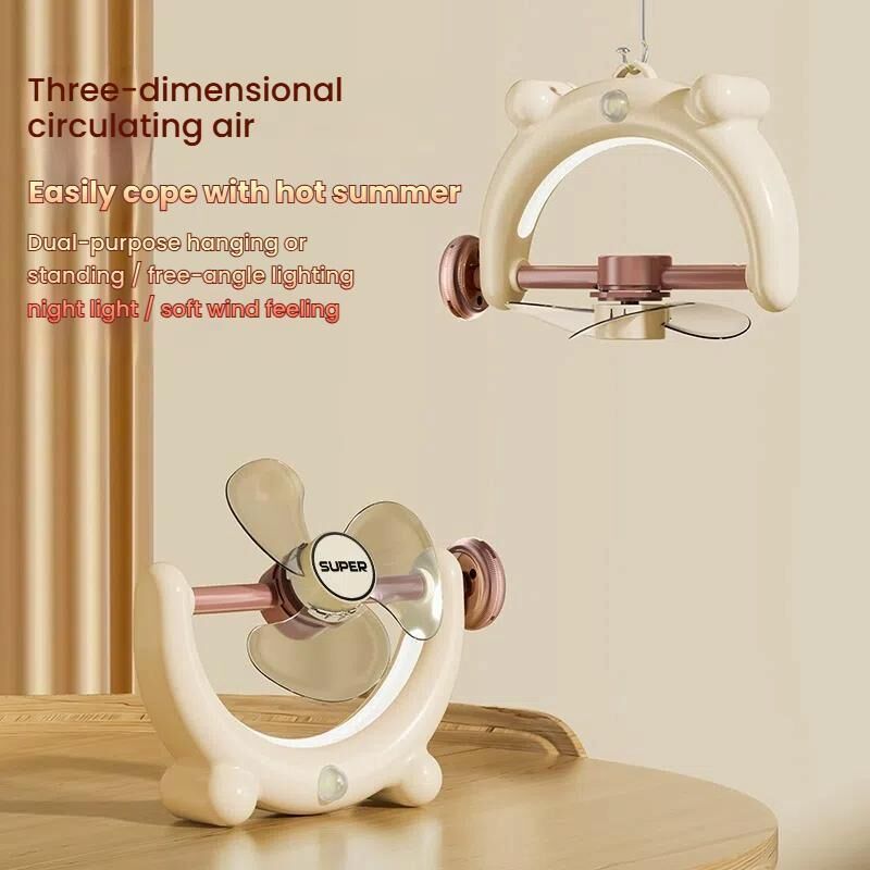 1. Light desktop fan, light sound and wind power, hanging and standing dual-use, 3D circulation fresh air, soft wind feel