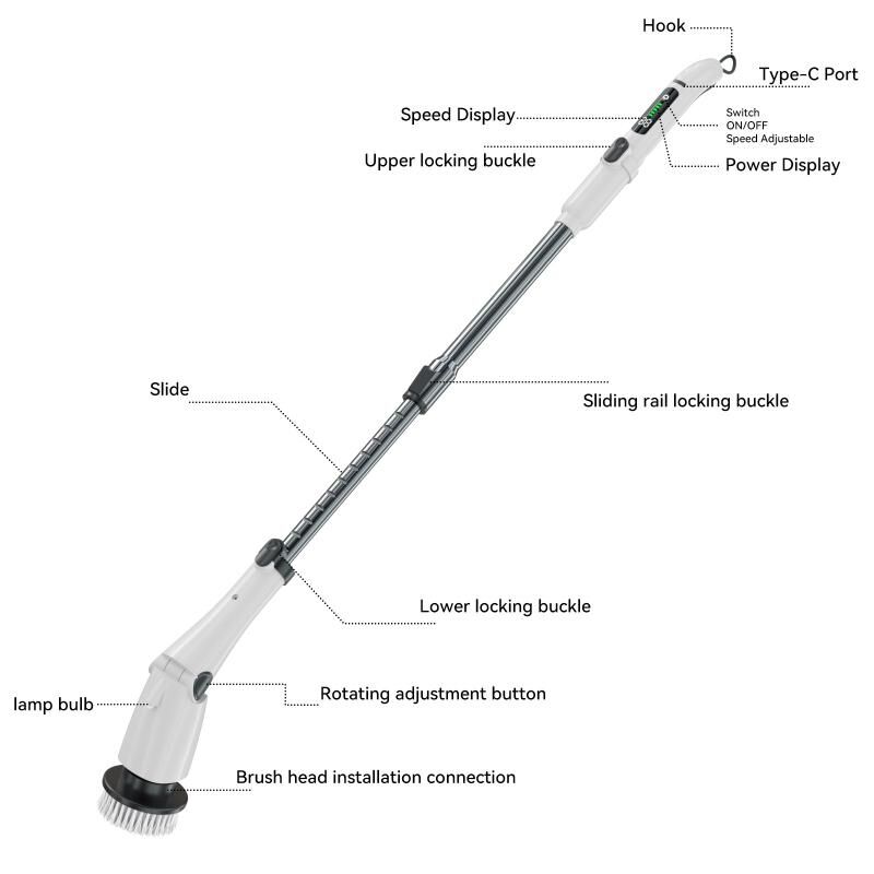 Πολυλειτουργική μακριά και σύντομη ηλεκτρική βούρτσα καθαρισμού διπλής χρήσης Κουζίνας Μπάνιου Παράθυρο Βούρτσα δαπέδου (Μαύρο)