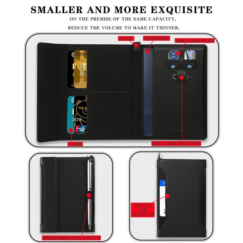 2. Smart Storage: Built-in four bank card slots, one passport slot, one ticket slot, one SIM card PIN slot and 2 SIM card slots can be used to store passports, credit cards, boarding passes.
