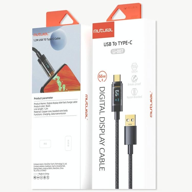 Mutural Li-CC007 1.2m 66W Transparent Digital Display USB to Type-C Charging Data Cable (Mutural)