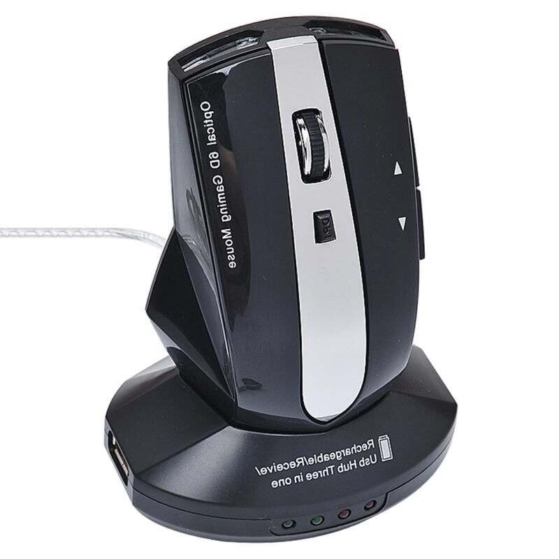 MZ-011 2.4GHz 1600DPI ασύρματο επαναφορτιζόμενο οπτικό ποντίκι με λειτουργία HUB (μαύρο)