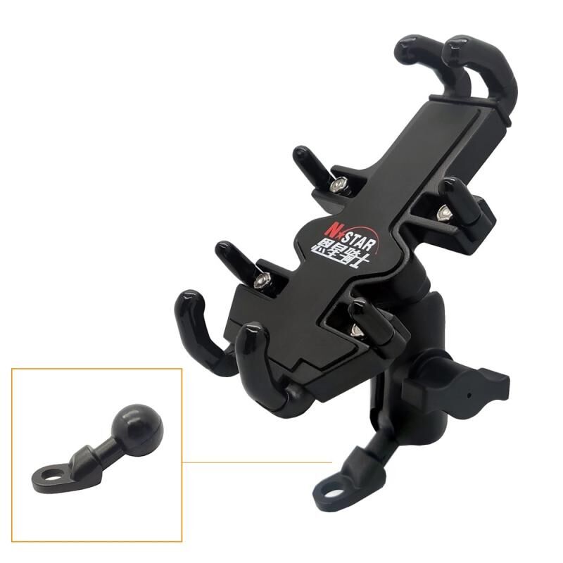 N-STAR NJN001 Motorcycle Bicycle Compatible Mobile Phone Bracket Aluminum Accessories Riding Equipment(With Crooked Ball Head) (N-STAR)