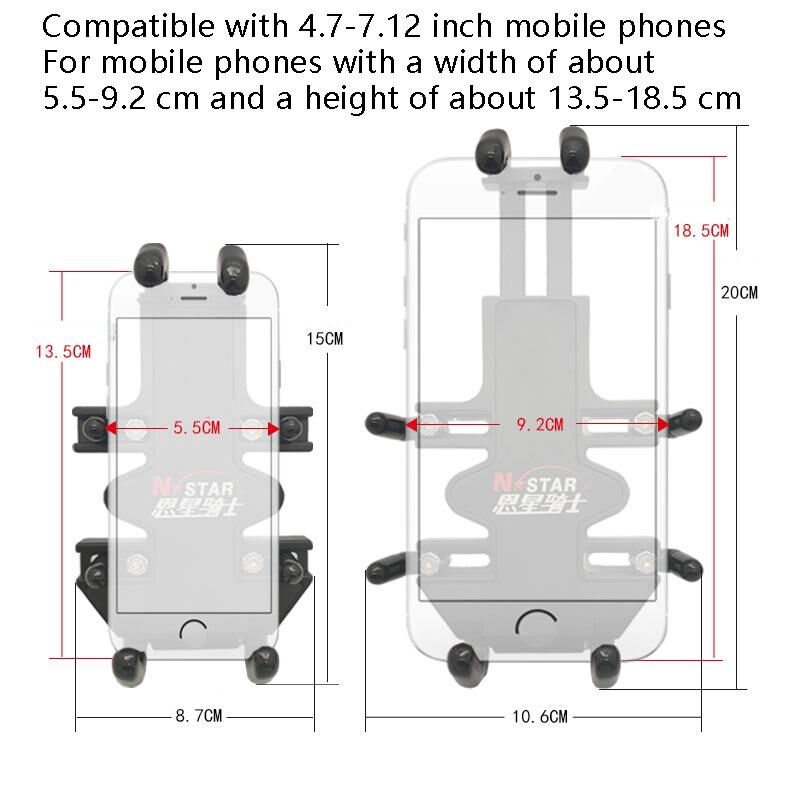 5. Applicable mobile phones: compatible with mobile phones of 4.7-7.12 inches, width of about 5.5-9.2 cm, and height of about 13.5-18.5 cm