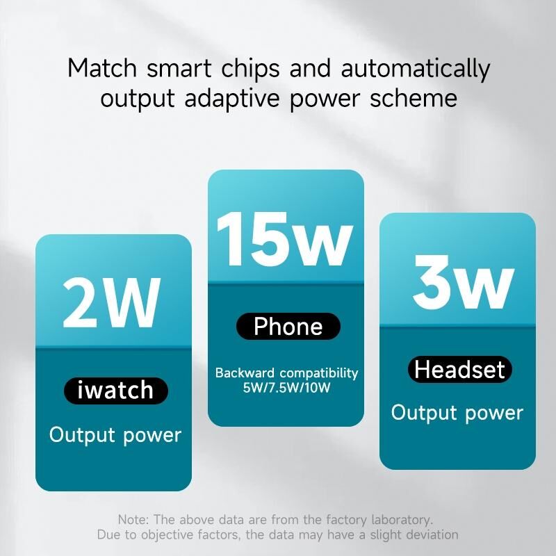 4. Ισχύς φόρτισης: κινητό τηλέφωνο: 15W / ρολόι: 2.5W / ακουστικά: 3W