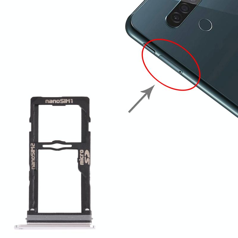 1. Nano SIM Card Tray + Nano SIM Card Tray / Micro SD Card Tray for LG G8S ThinQ LMG810, LM-G810, LMG810EAW.