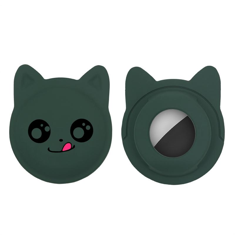 Naughty Smile Cute Cartoon Pet Collar Anti-lost Tracker Silicone Case For AirTag(Dark Green) (Mutural)