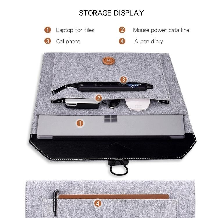 ND06 Πολλαπλών χρήσεων Felt Button Laptop Εσωτερική τσάντα για φορητό υπολογιστή 13,3 ιντσών (γκρι)