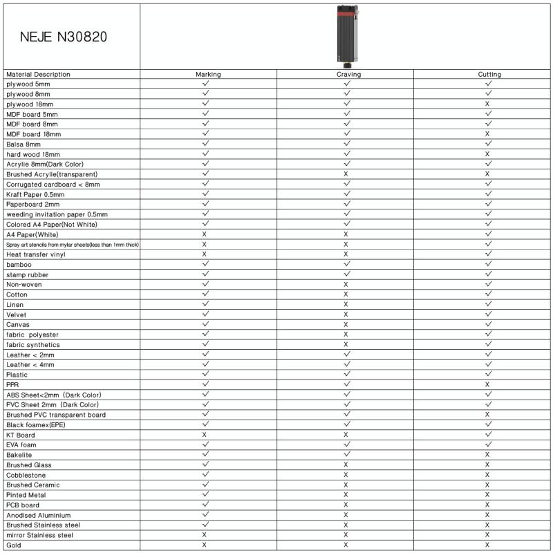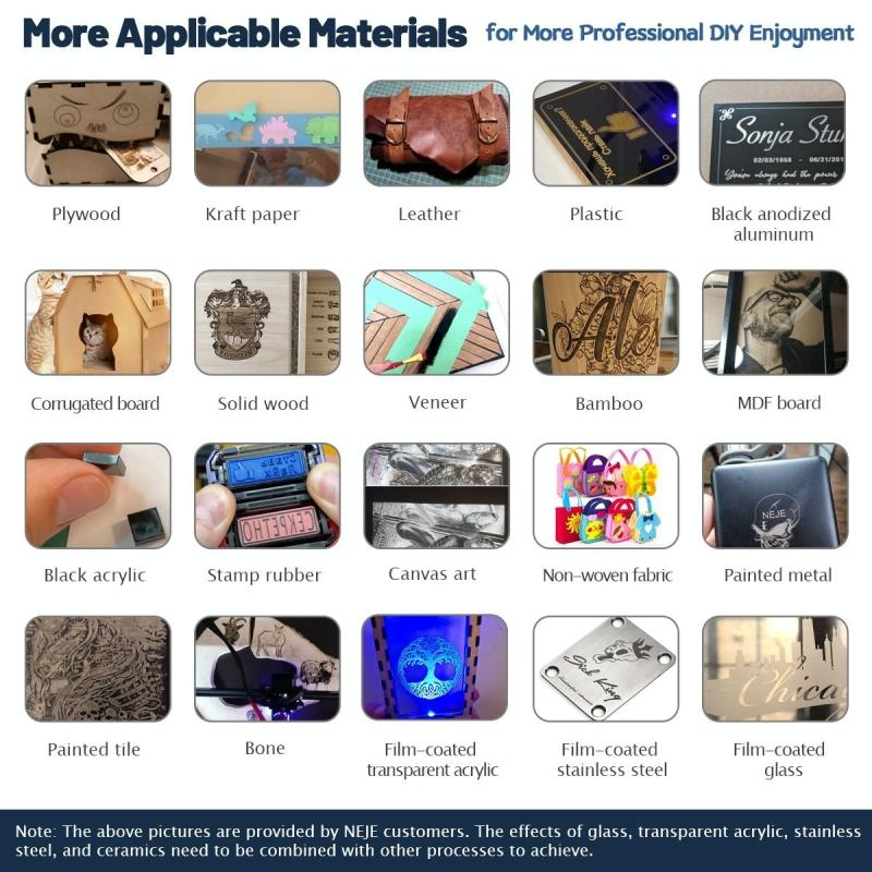 12. Can engrave: MDF/Balsa/Paper/Wood/Fabric/Plastic/Leather/Plywood/Foam/Anodized Aluminum