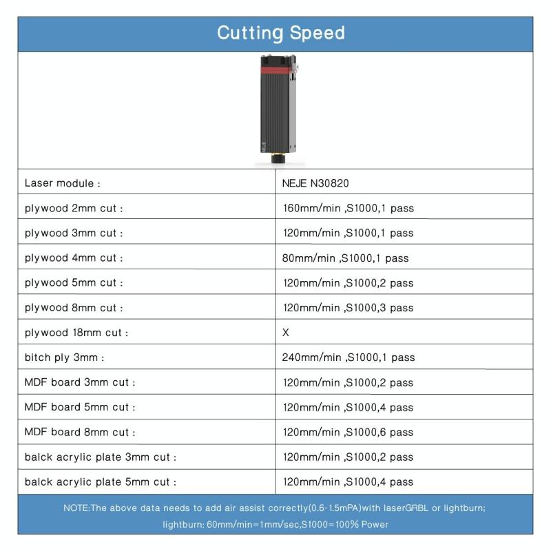 5. 32-bit control system, the fastest speed reaches 250,000mm/min, supports LaserGRBL, Lightburn, NEJE software, NEJE APP (Android, iOS, ipadOS, macOS), NEJE provides free software upgrade services.