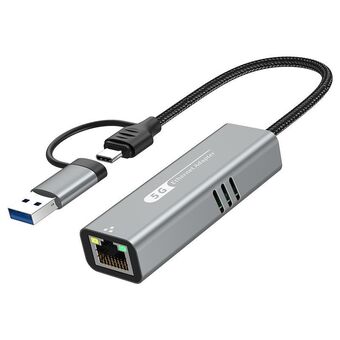 Προσαρμογέας ενσύρματου δικτύου Ethernet USB-C / Type-C και USB3.0 σε RJ45 5G Gigabit (γκρι)