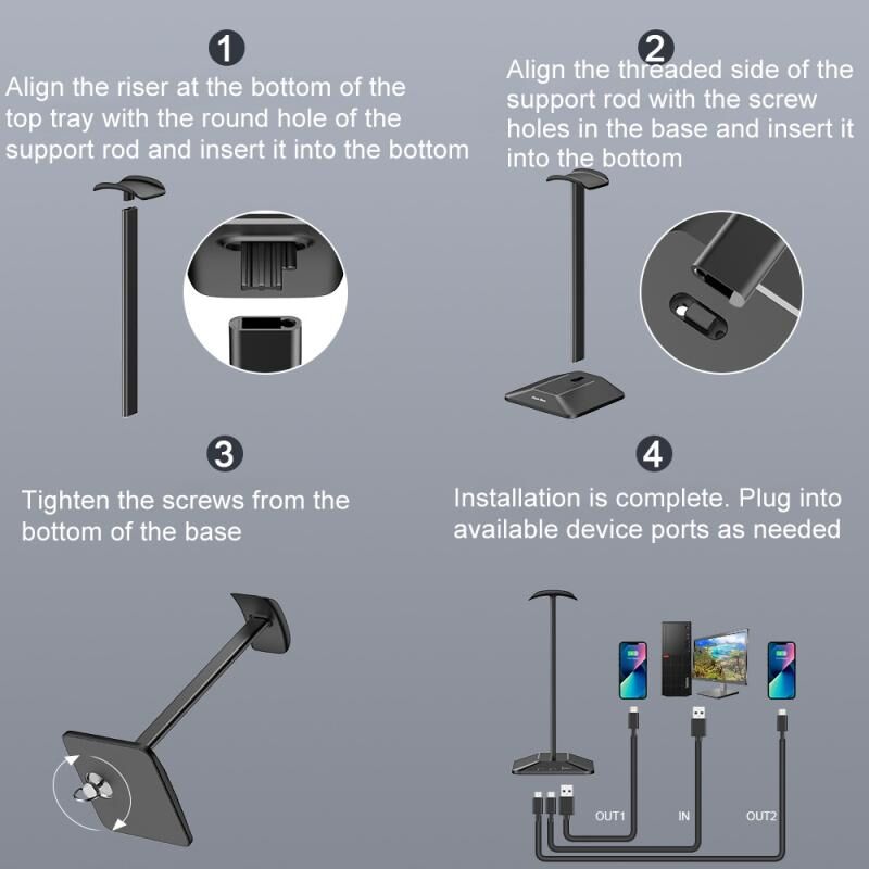 New Bee Dual Output Colorful Headset Display Rack HUB Expansion Headphone Holder, Color: Z8 Silver