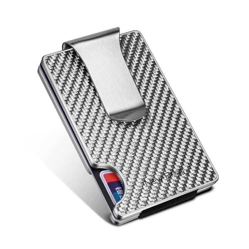 Νέο-Bring Μεταλλικό Πορτοφόλι από Ίνες Άνθρακα Εξαιρετικά Λεπτό Κρατητήρας Καρτών Ανδρικός RFID Αντικλεπτικό Απλό Πορτοφόλι Συσκευή Αποθήκευσης Τραπεζικής Κάρτας Πιστωτικής Κάρτας (Ασημί) (New-Bring)
