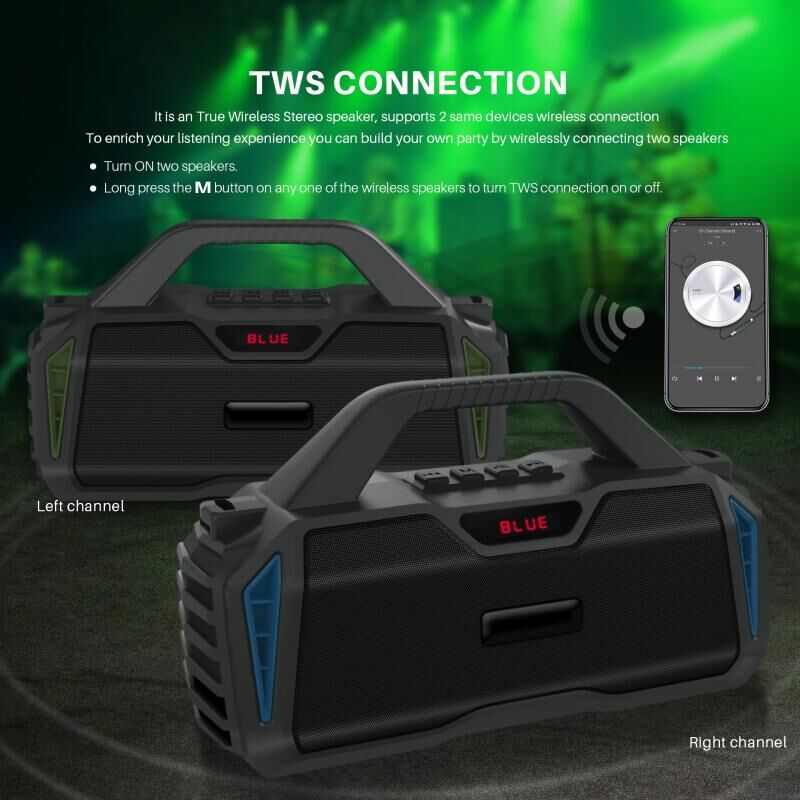 Νέο Rixing NR-6011M Bluetooth 5.0 Φορητό Εξωτερικού Χώρου Καραόκε Ασύρματο Ηχείο Bluetooth με Μικρόφωνο & Λουρί Ώμου (Πράσινο) (NewRixing)