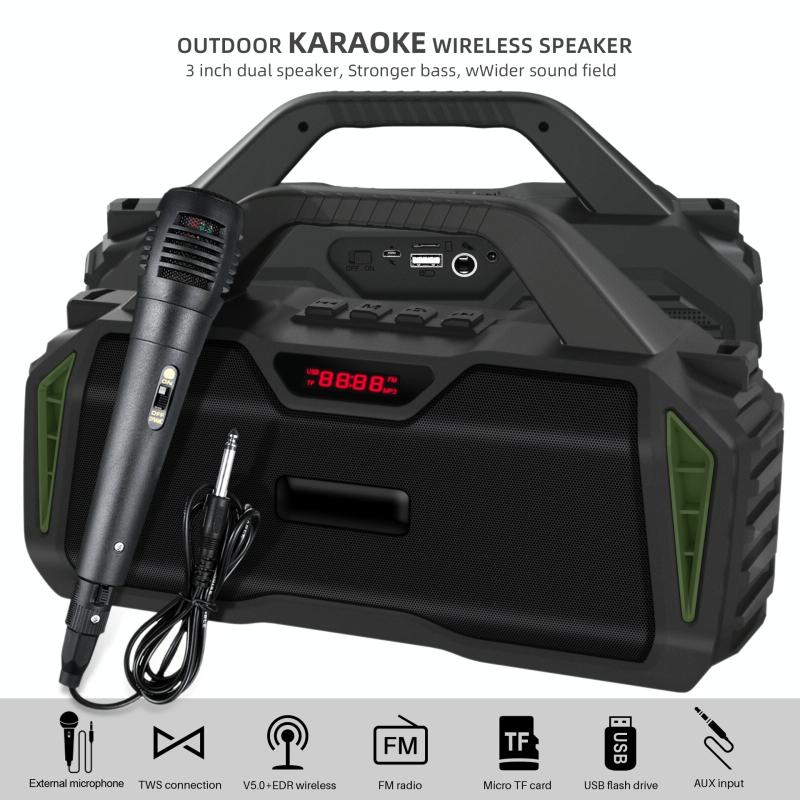 Νέο Rixing NR-6011M Bluetooth 5.0 Φορητό Εξωτερικού Χώρου Καραόκε Ασύρματο Ηχείο Bluetooth με Μικρόφωνο & Λουρί Ώμου (Πράσινο) (NewRixing)