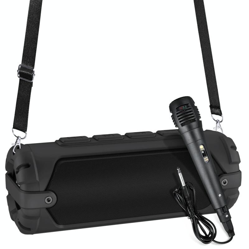 Νέο Rixing NR-6013M Bluetooth 5.0 Φορητό Εξωτερικού Χώρου Καραόκε Ασύρματο Ηχείο Bluetooth με Μικρόφωνο & Λουρί Ώμου (Πράσινο) (Μαύρο)