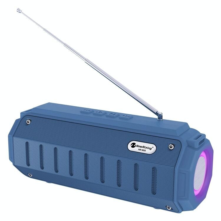 New Rixing NR-905FM TWS Bluetooth Speaker Support Hands-free Call / FM with Shoulder Strap & Antenna (Blue) (NewRixing)