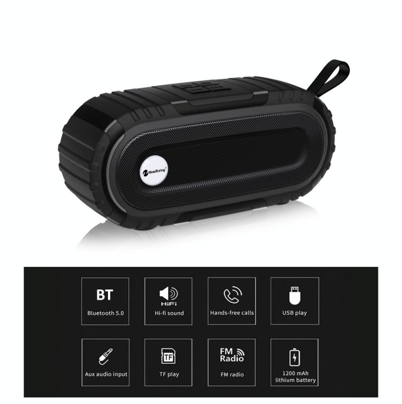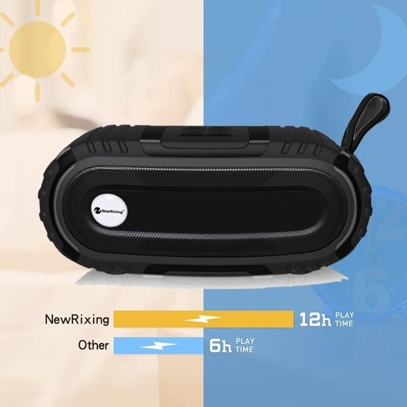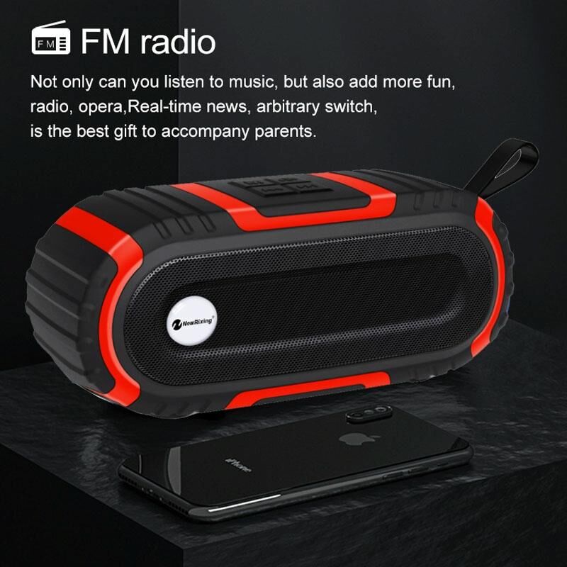 New Rixing NR5016 Wireless Portable Bluetooth Speaker Stereo Sound 10W System Music Subwoofer Column, Support TF Card, FM(Black) (NewRixing)