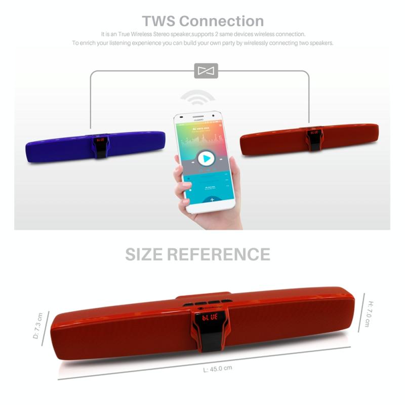 New Rixing NR7017 TWS Portable 10W Stereo Surround Soundbar Bluetooth Speaker with Microphone(Red) (NewRixing)