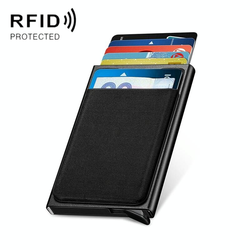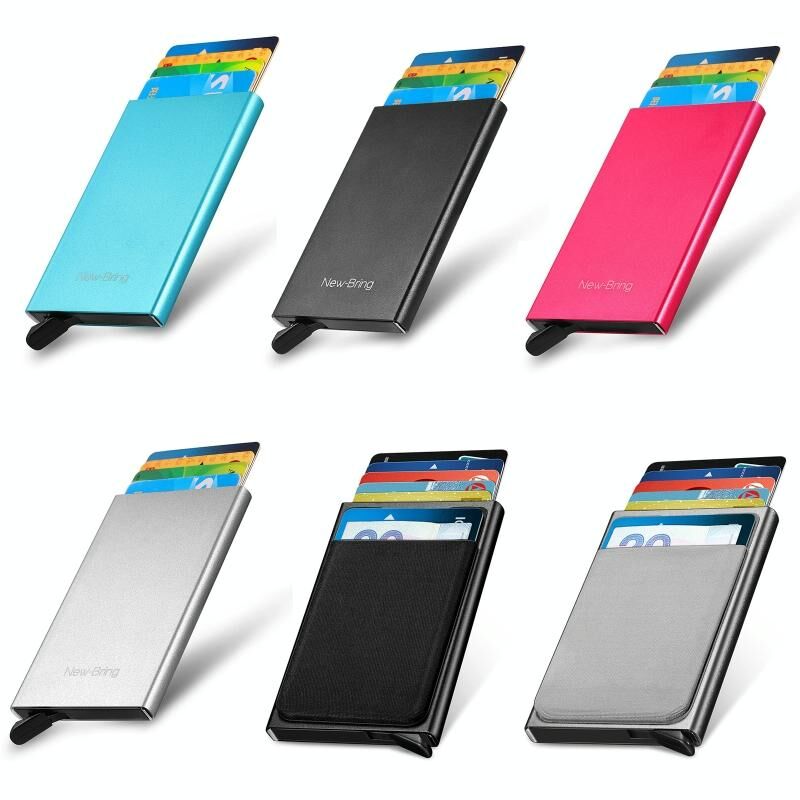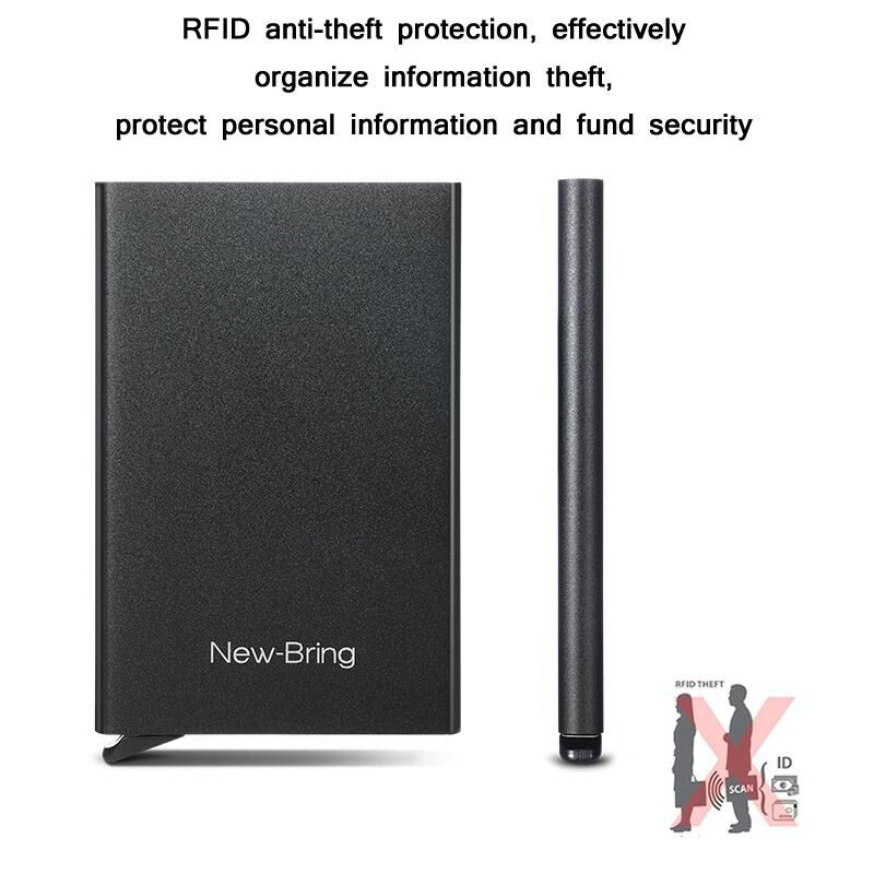 NEWBRING Metal Wallet Automatic Pop-up Anti-degaussing Card Holder, Colour: Black With Back Stickers (NEWBRING)