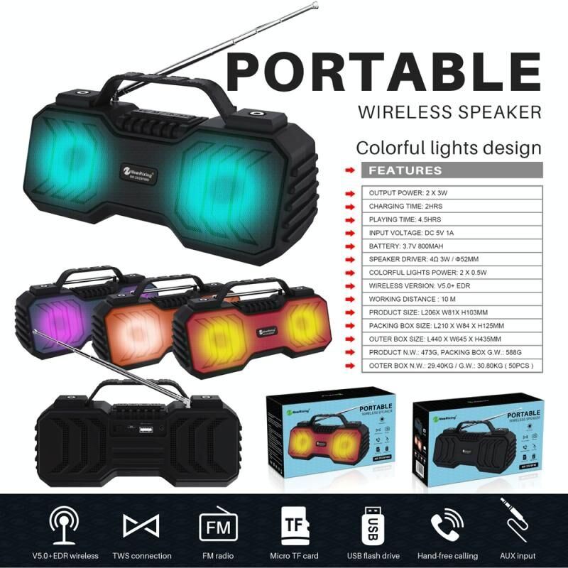1. Compatible with FM, TF, audio input, Bluetooth stereo, excellent sound quality, powerful bass, hands-free function, one-key answering, creative simple and elegant appearance