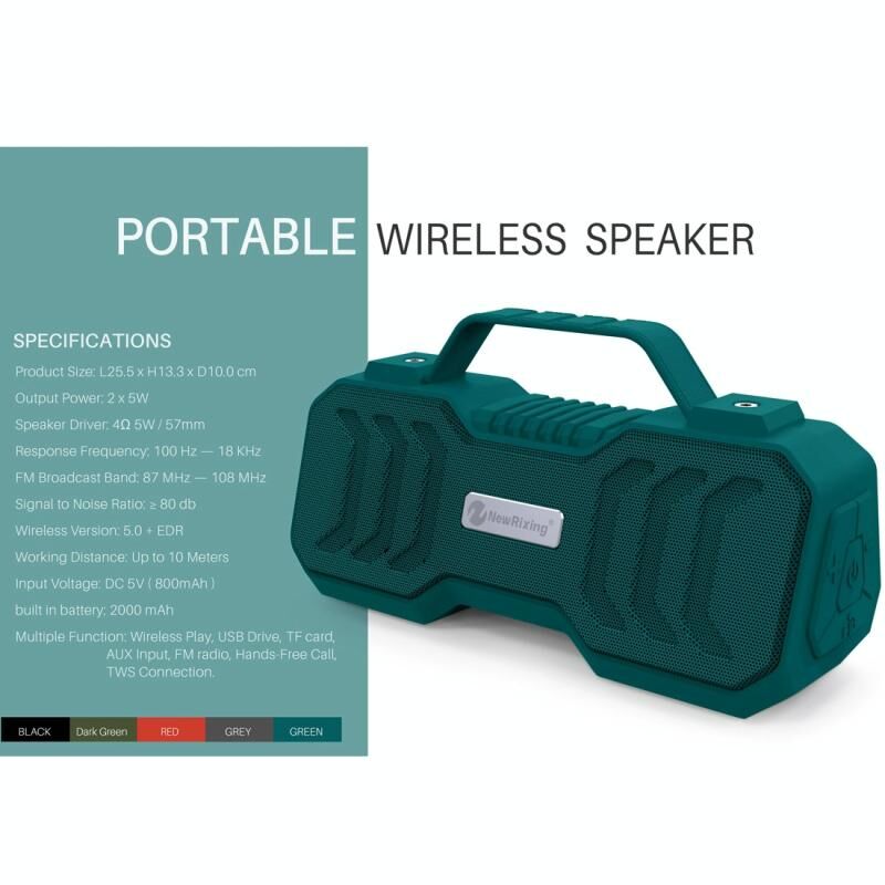 NewRixing NR-4500 Portable Wireless Bluetooth Stereo Speaker Support TWS / FM Function Speaker (Green) (NewRixing)