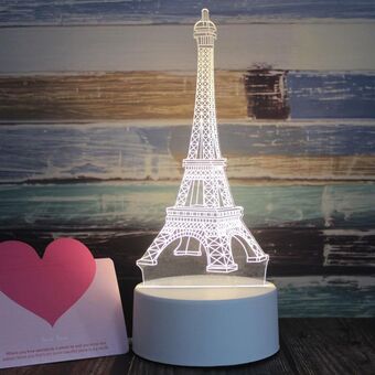 White Base Creative 3D Tricolor LED Decorative Night Light, Plug Version, Shape:Iorn Tower(White-Warm-Warm White)