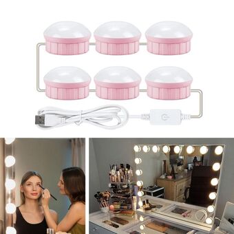 6 LEDs Mirror Front Light Dimmable Makeup Mirror USB Touch Control Light