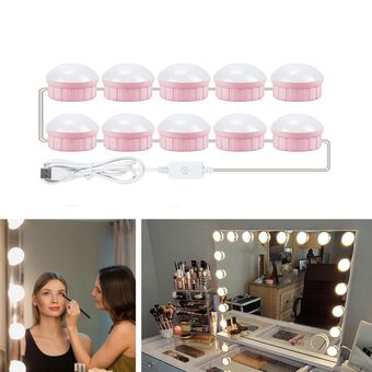 10 LEDs Cosmetic Room Bathroom Mirror Front Light USB Three-Color Dimming Light