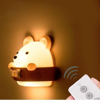 Bear Remote Control Night Light Bedside Eye Protection Wall Lamp with 3 Light Modes, Style:Rechargeable