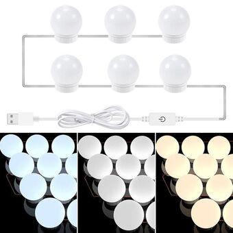 6 LEDs Cosmetic Room Bathroom Mirror Front Light USB Three-Color Dimming Light