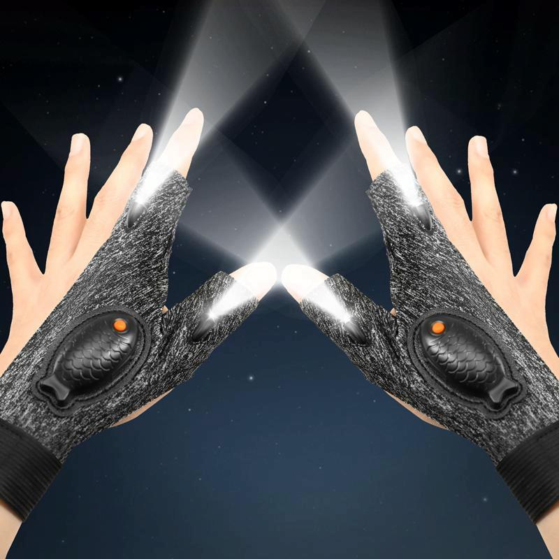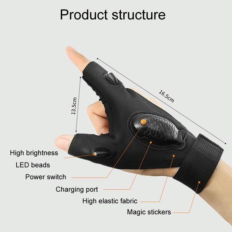 Night Riding Lighting Car Repair Fish Rechargeable LED Light Gloves, Style: Sisal Gray-Left And Right Hand