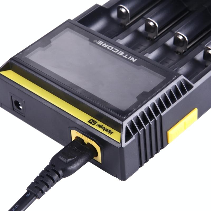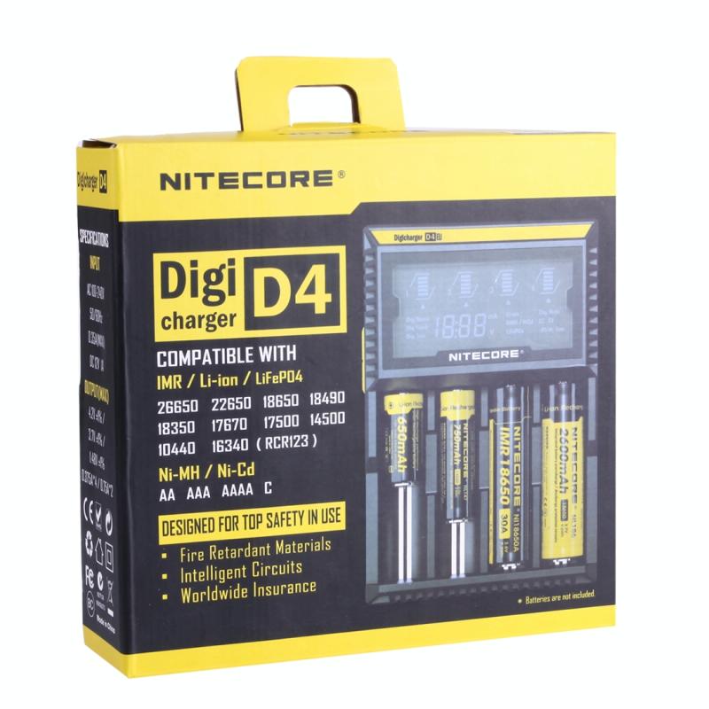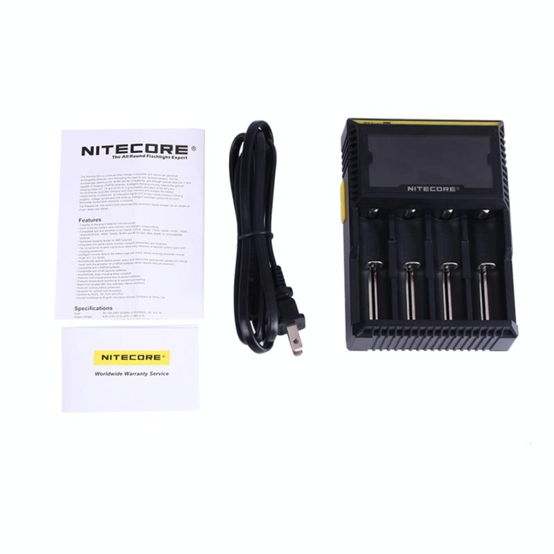 Nitecore D4 Intelligent Digi Smart Charger with LCD Display for 14500, 16340 (RCR123), 18650, 22650, 26650, Ni-MH and Ni-Cd (AA, AAA) Battery