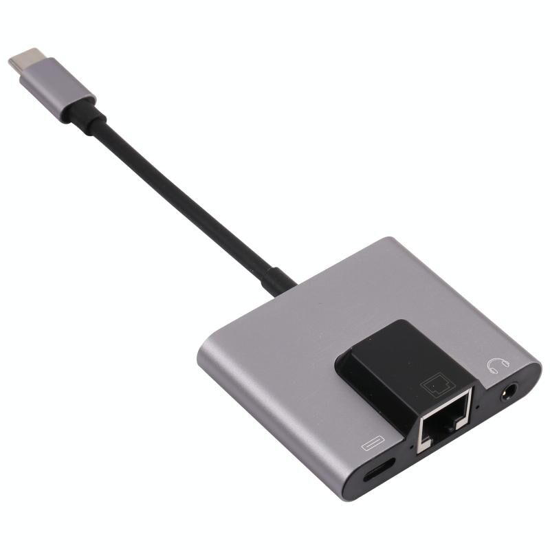 Προσαρμογέας NK-1056TC 3 σε 1 USB-C / Type-C Αρσενικό σε USB-C / Type-C Φόρτισης + Ethernet + Θηλυκό Ακουστικών 3.5mm