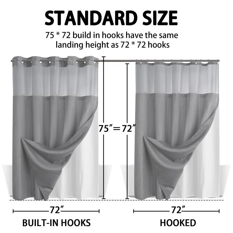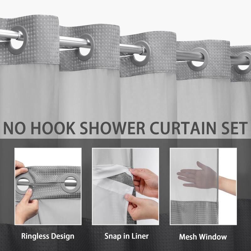 1. This hookless shower curtain set features a removable liner and built-in grommets, which can be easily hung without removing the shower rod, and the self-hanging shower curtain set saves time and money.