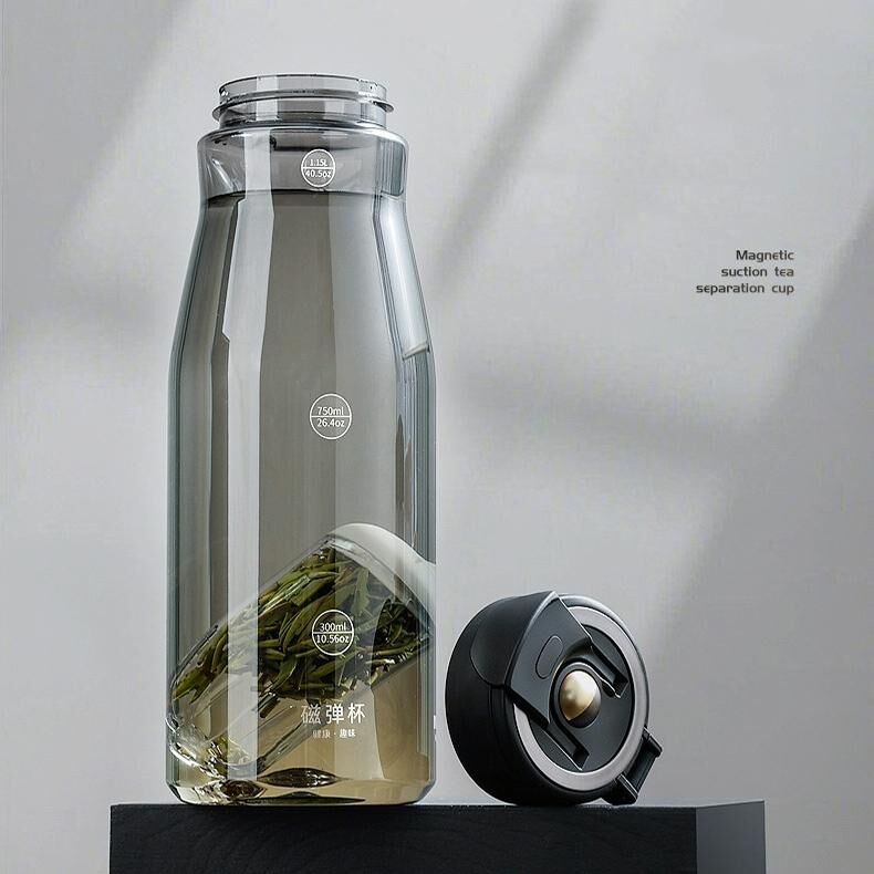 Nobvan Μαγική μπάλα μαγνητικής βόμβας τσάι αποθήκη τσαγιού Tritan μεγάλης χωρητικότητας αθλητικό κύπελλο, στυλ: 1000ml (γκρι) (Nobvan)