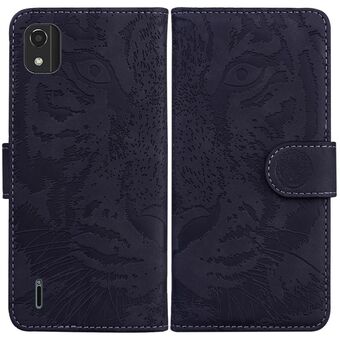 Θήκη τηλεφώνου από δέρμα με οριζόντιο άνοιγμα για Nokia C21 με ανάγλυφο μοτίβο τίγρης (Μαύρο)
