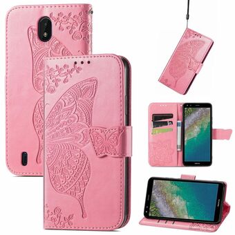 Butterfly Love Flowers Embossed Horizontal Flip Leather Case with Holder & Card Slots & Wallet & Lanyard For Nokia C01 Plus(Pink)