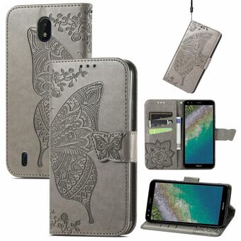 Butterfly Love Flowers Embossed Horizontal Flip Leather Case with Holder & Card Slots & Wallet & Lanyard For Nokia C01 Plus(Gray)