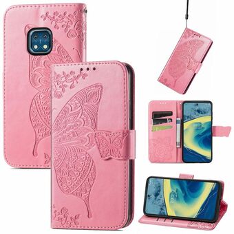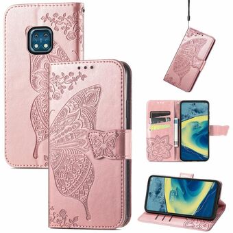 Butterfly Love Flowers Embossed Horizontal Flip Leather Case with Holder & Card Slots & Wallet & Lanyard For Nokia XR20(Pink)