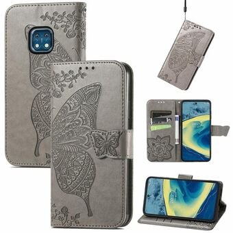 Butterfly Love Flowers Embossed Horizontal Flip Leather Case with Holder & Card Slots & Wallet & Lanyard For Nokia XR20(Gray)